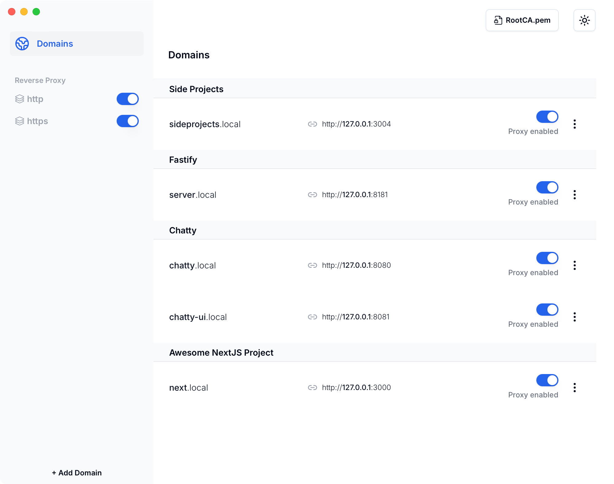 Simplify Local Development with .local Domains Say goodbye to cumbersome IP addresses and port numbers like 192.168.0.67:3000. Forget the hassle of manually creating HTTPS certificates! Develop and test your web apps seamlessly using convenient .local domains. How it works: Set up a .local domain: Choose a descriptive domain (e.g., webapp.local) and configure it within your development environment.Local network magic: Your .local domain automatically becomes accessible to any device on your local network (phones, tablets, etc.). All requests to that domain get routed directly to your development machine. Benefits: Effortless access: No more memorizing IP addresses. Type your .local domain in any browser on your network for direct access.Streamlined collaboration: If you're on a team, colleagues can easily access your in-progress work using the same .local domain.Secure connections: Set up HTTPS for your .local domains with ease, enhancing development security.